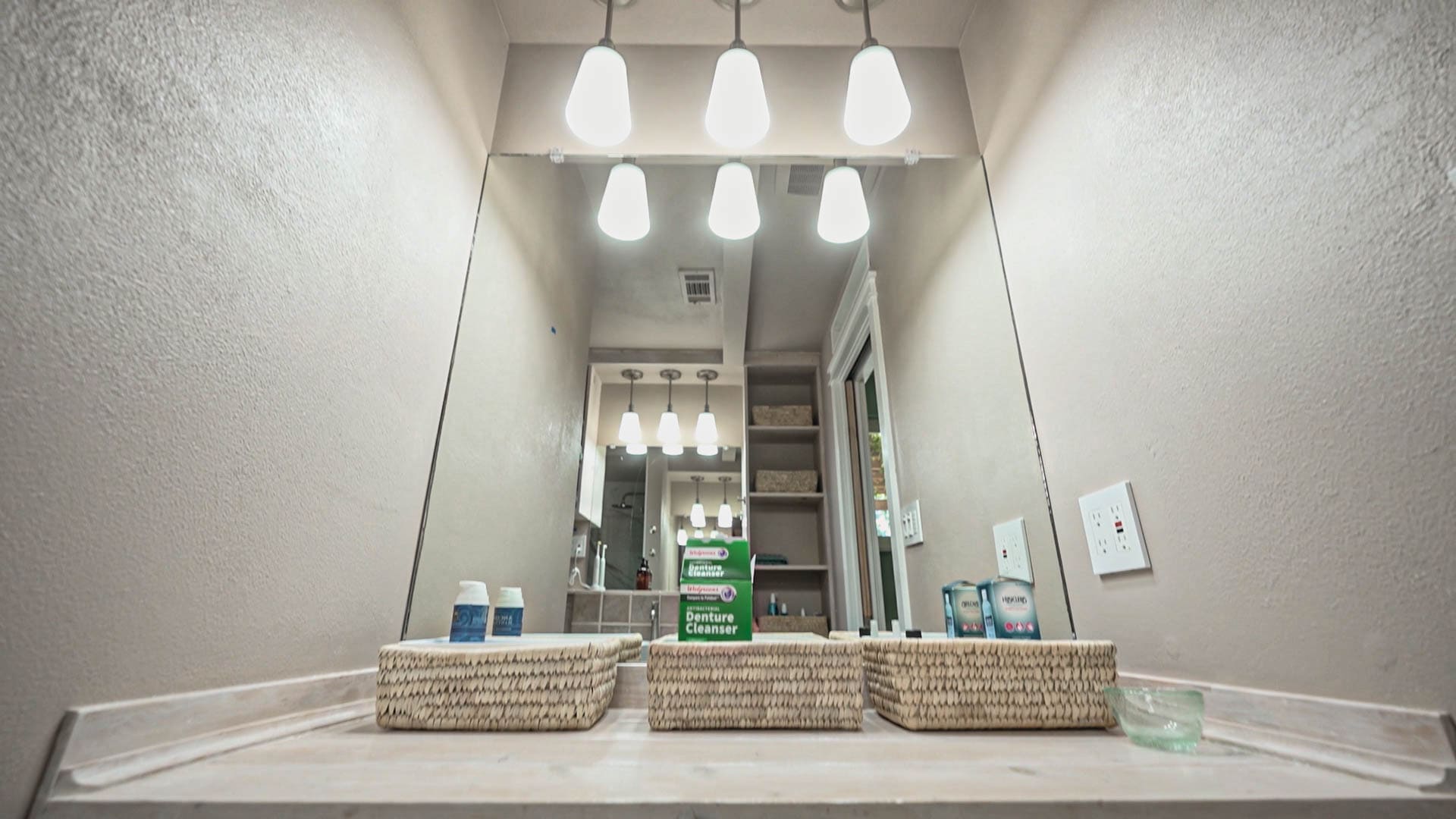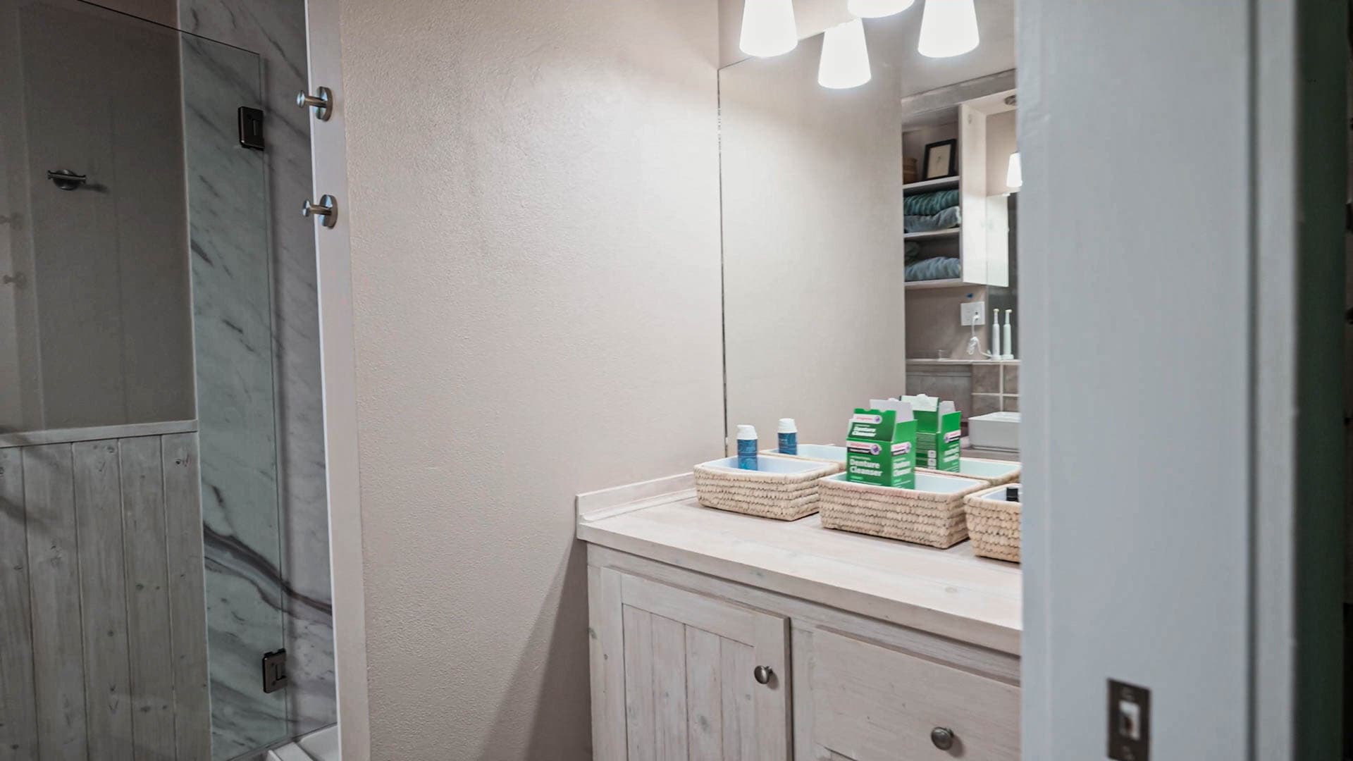 A special relationship was formed. Here we show a Bathroom Remodel project we completed for your neighbors in Arden Arcade. It includes a custom vanity, storage with counter, and shelving to match the wooden panel walls. Brass nickel fixtures and bright lighting compliment the full quartz shower enclosure.